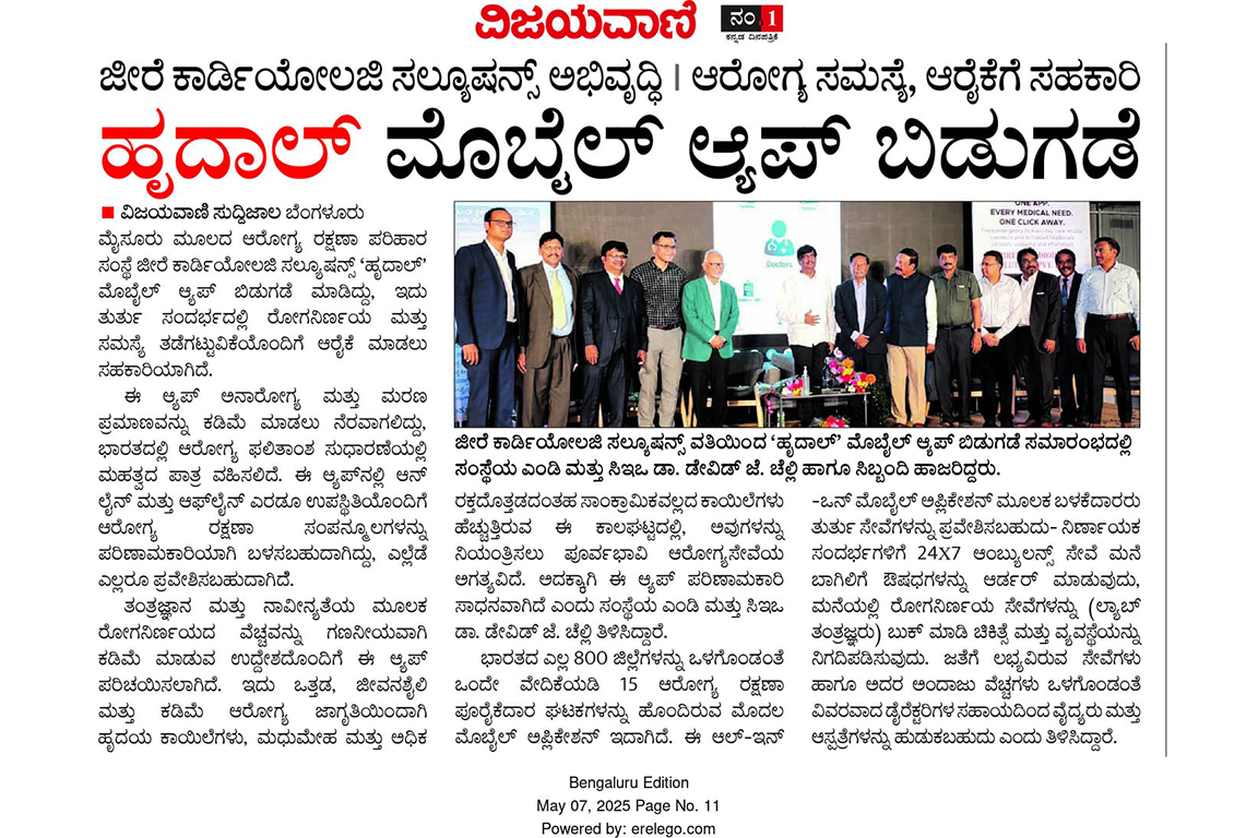 On May 4, 2025, JIREH Cardiodigi Solutions Pvt. Ltd. officially launched the HRUDAL mobile app in Bengaluru, marking a significant step toward accessible, affordable, and proactive healthcare across India.